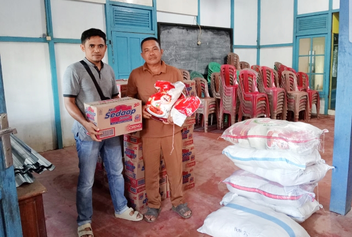 PT.JUS Salurkan Bansos Untuk Empat Desa Terdampak Banjir di Kec. Sandai
