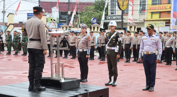 Pleton gabungan dari unsur TNI, Polri, Brimob, Polisi Militer, Dishub, Satpol PP, dan Damkar Kabupaten Sanggau