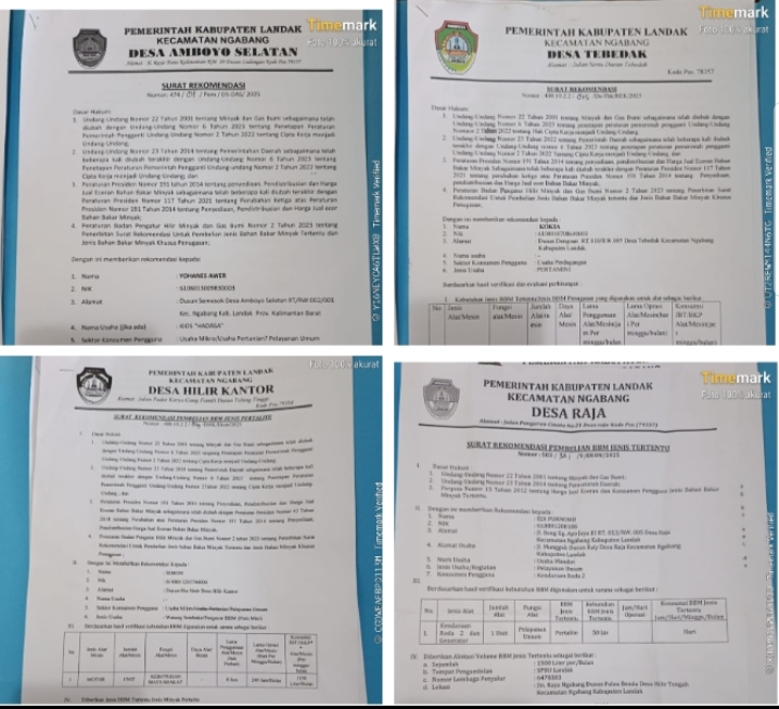 Foto : Surat Rekomendasi Permohonan Kebutuhan BBM Desa – Desa tidak terjangkau pelayanan SPBU