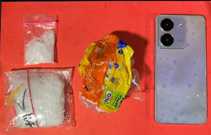 Dalam penangkapan itu, polisi juga menyita barang bukti berupa dua klip sabu, satu plastik tisu oranye-kuning yang digunakan untuk menyamarkan paket, dan satu unit ponsel Vivo yang diduga sebagai alat komunikasi dengan jaringan pengendali.