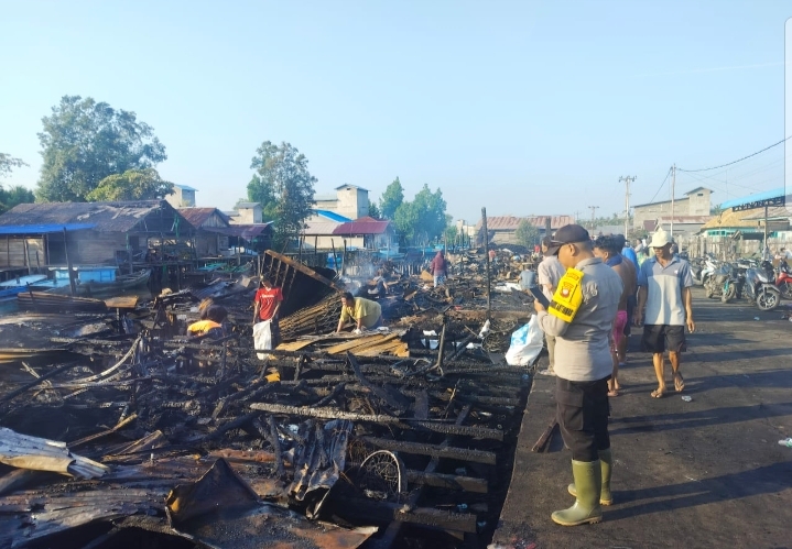 Dalam sekejap, api yang di bantu tiupan angin melahap 10 pintu bangunan, termasuk gudang kelapa, toko sembako, rumah tinggal, hingga bengkel milik warga. Kobaran api baru bisa dipadamkan sekitar pukul 03.00 WIB setelah upaya keras warga bersama petugas pemadam kebakaran.