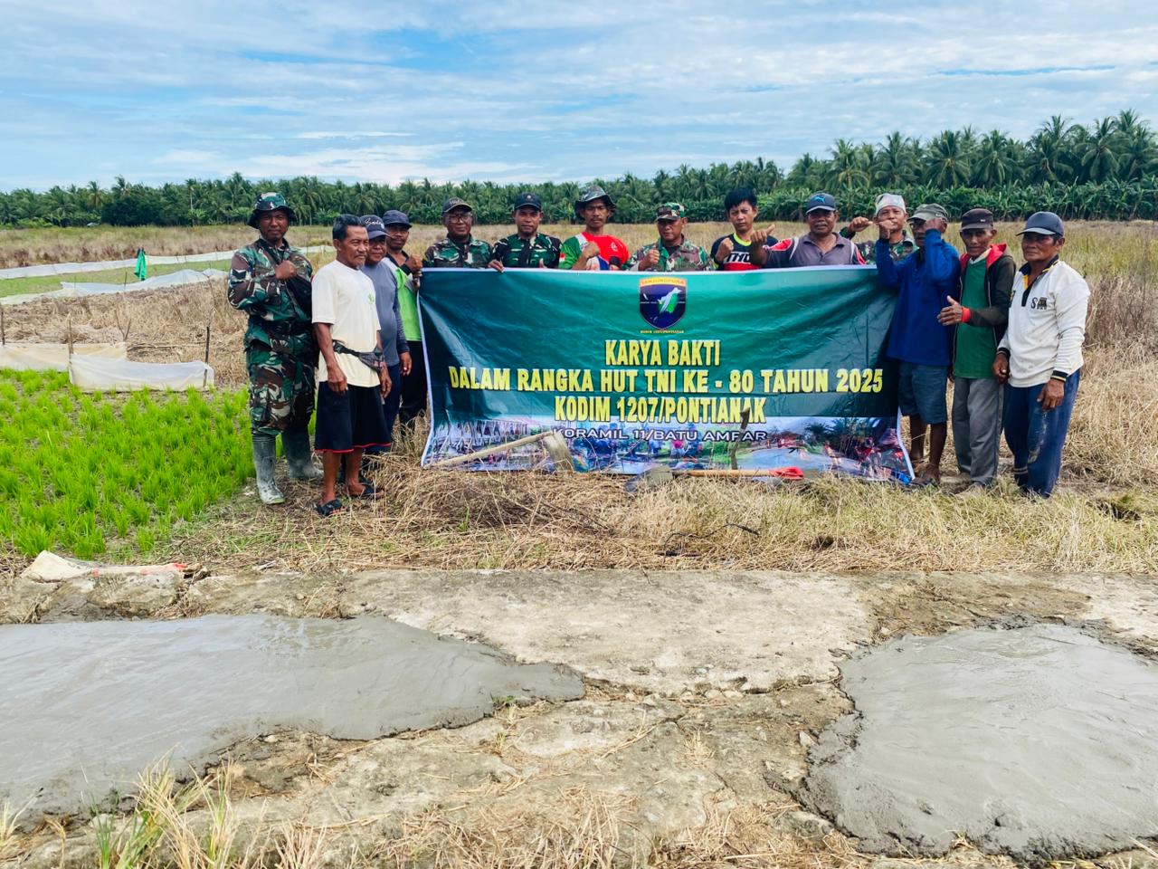 Kubu Raya – Crimhanternews.com, Dalam rangka memperingati HUT TNI ke-80 Tahun 2025, Kodim 1207/Pontianak melalui Koramil 11/Batu Ampar yg di pimpin Kapten Inf Suprio melaksanakan kegiatan Karya Bakti bersama masyarakat di Jln. Bimas ,RT006/RW003, Dusun Mekar Jaya, Desa Sungai Jawi, Kecamatan Batu Ampar, Kabupten Kubu Raya,Provinsi Kalimantan Barat. Sabtu ( 4/10/2025).