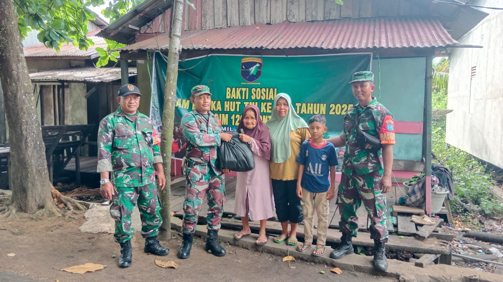 Kodim 1207/Pontianak. Koramil 1207-11/Batu Ampar yang diwakilkan oleh para Babinsa sebagai garda terdepan membagikan paket sembako ke masyarakat kurang mampu dalam rangka HUT ke 80 Tentara Nasional Indonesia, di Desa Batu Ampar . Rabu, (15/10/2025)