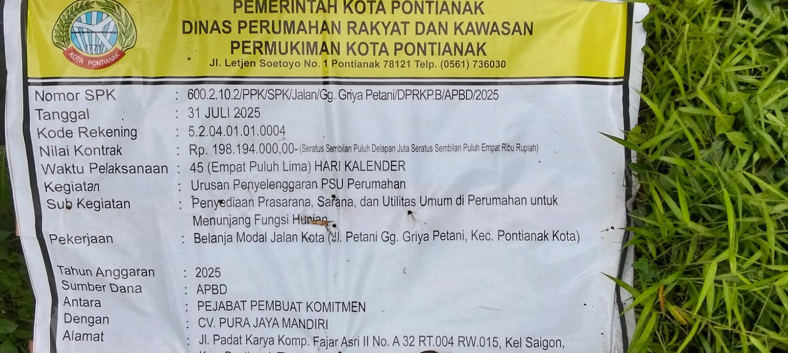 Kasus kerusakan dini proyek infrastruktur daerah terus berulang dari tahun ke tahun di pontianak. Dari jalan lingkungan hingga drainase perkotaan, sebagian besar proyek menggunakan dana APBD dengan pola serupa, kontrak cepat, kualitas lemah, dan pengawasan minim.