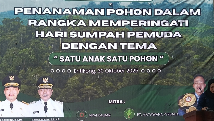Crimehanternews.com – Entikong, Kabupaten Sanggau, Kalimantan Barat, Kamis (30/10/2025) – Dalam rangka memperingati Hari Sumpah Pemuda ke-97 tahun 2025, Pemerintah Provinsi Kalimantan Barat melalui Dinas Lingkungan Hidup dan Kehutanan (DLHK) Provinsi Kalimantan Barat menggelar kegiatan Penanaman Pohon Serentak bertema “Satu Anak Satu Pohon”. Kegiatan berlangsung di kawasan perbatasan Indonesia–Malaysia, tepatnya di Kecamatan Entikong, Kabupaten Sanggau.