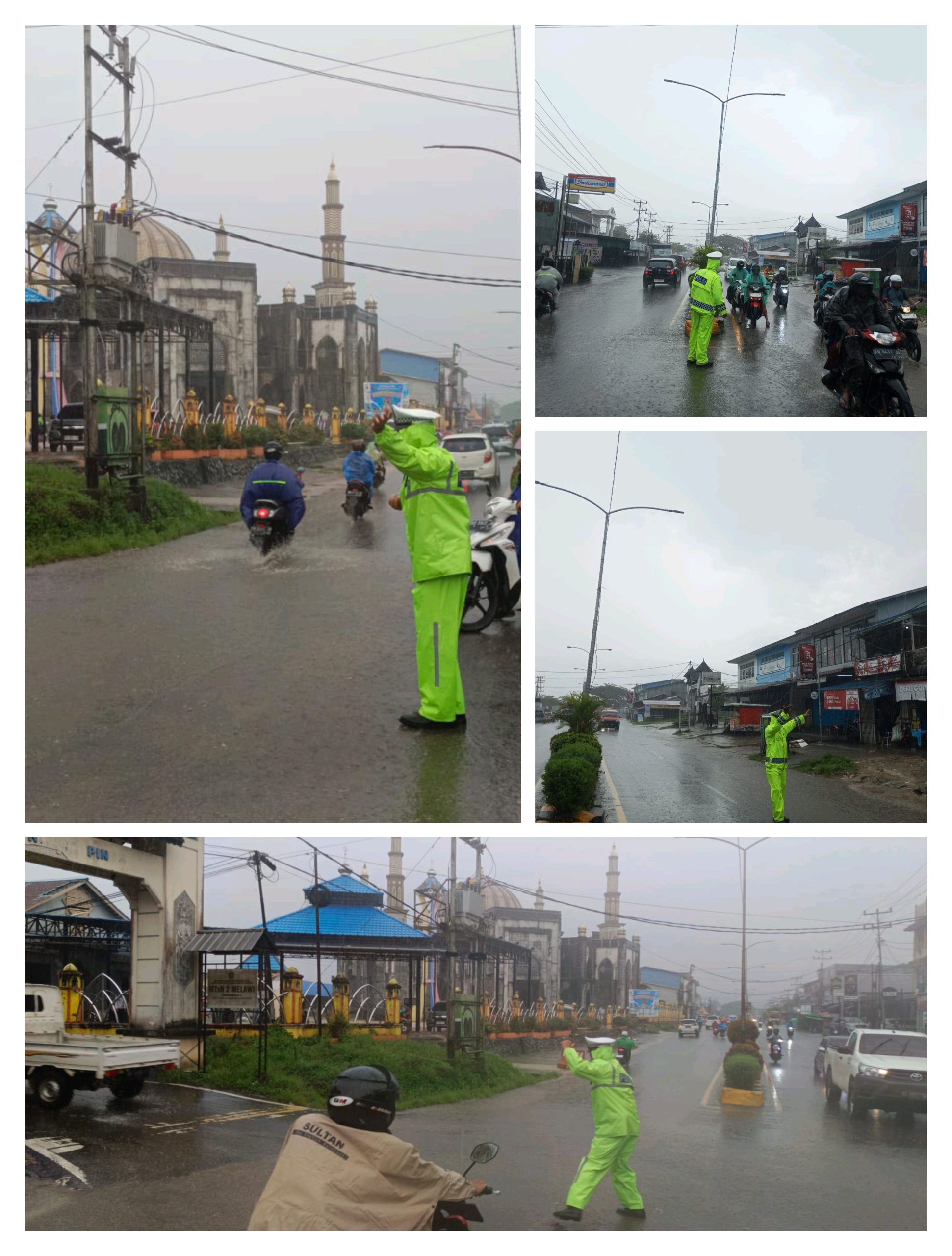 “Meskipun hujan, personel kami tetap melaksanakan tugas pengaturan di titik-titik ploting point pagi untuk memastikan arus lalu lintas tetap lancar,” ujar Iptu J.E. Kusuma, S.A.P., M.H.