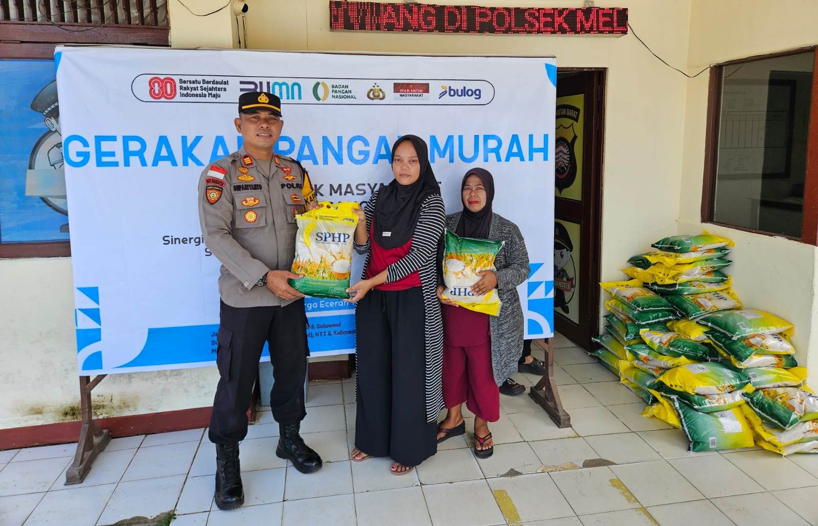 Kegiatan yang dimulai pukul 08.00 WIB tersebut dipimpin langsung oleh Kapolsek Meliau AKP Supariyanto, SH, serta diikuti oleh seluruh personel Polsek Meliau. Masyarakat tampak antusias sejak pagi untuk mendapatkan beras dengan harga terjangkau yang disediakan dalam program ini.