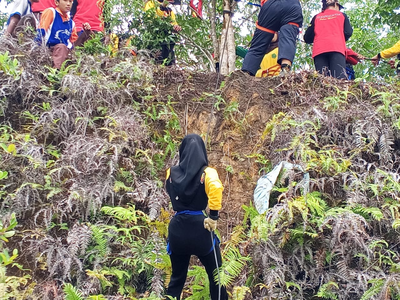 Pembinaan kali ini difokuskan pada Krida Penanggulangan Pelanggaran dan Bencana (PPB), dengan praktik refling atau teknik menuruni tebing menggunakan tali sebagai bentuk latihan keterampilan lapangan.