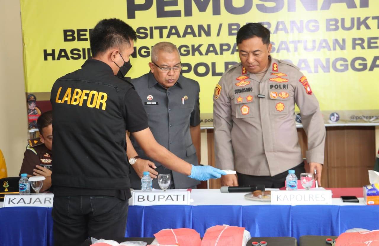 “Barang bukti yang kita musnahkan hari ini merupakan hasil kerja keras dan sinergi aparat penegak hukum bersama masyarakat. Kami mengajak seluruh elemen untuk terus berperan aktif melaporkan setiap bentuk penyalahgunaan dan peredaran narkotika. Ini adalah tanggung jawab bersama demi masa depan generasi kita,” ujarnya.