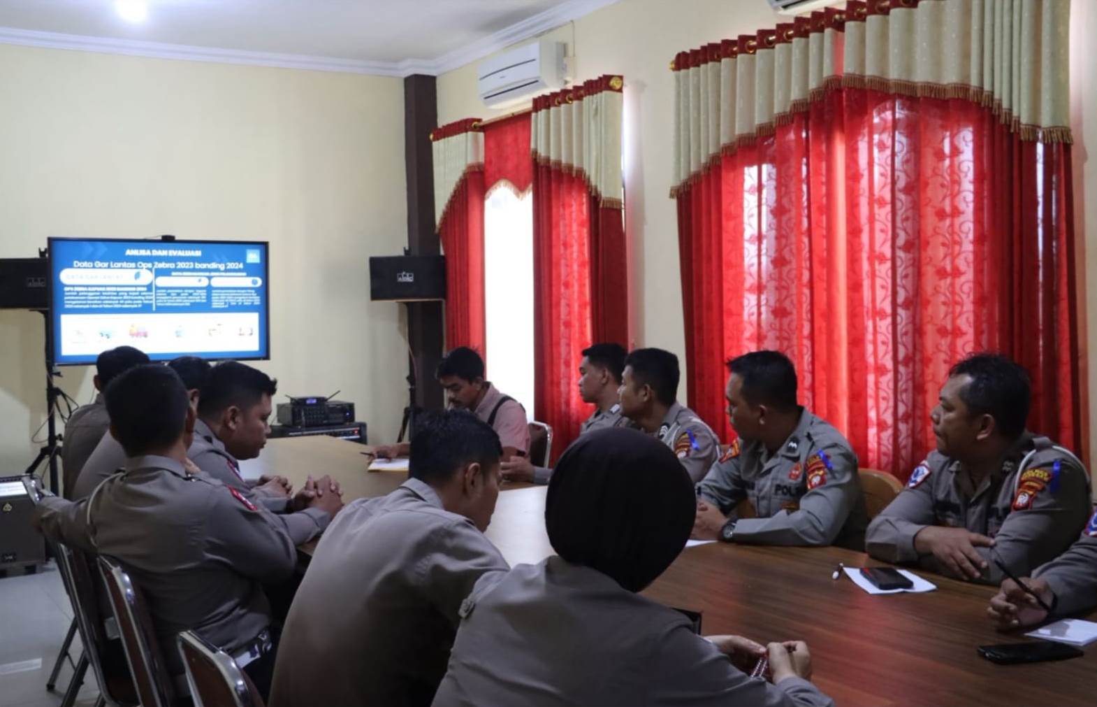 Dalam paparan awalnya, Kabag Ops menjelaskan kondisi dan dinamika lalu lintas di Kabupaten Sanggau, termasuk jumlah kendaraan yang mencapai 279.449 Unit pada 2025. Ia juga memaparkan analisis data pelanggaran dan kecelakaan lalu lintas pada pelaksanaan Operasi Zebra tahun 2023 dan 2024 sebagai evaluasi strategis.