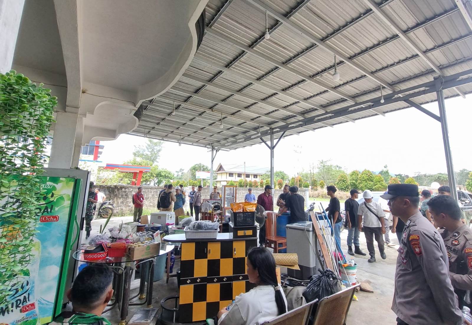 Setelah pembacaan putusan, petugas mulai melakukan pengosongan bangunan. Pemohon Eksekusi menyiapkan porter serta dua unit dump truck bernomor polisi KB 8738 DC dan KB 8381 CE untuk memindahkan barang-barang milik termohon. Seluruh proses pemindahan dilakukan dengan pengawasan aparat guna menghindari potensi kericuhan ataupun sengketa tambahan.