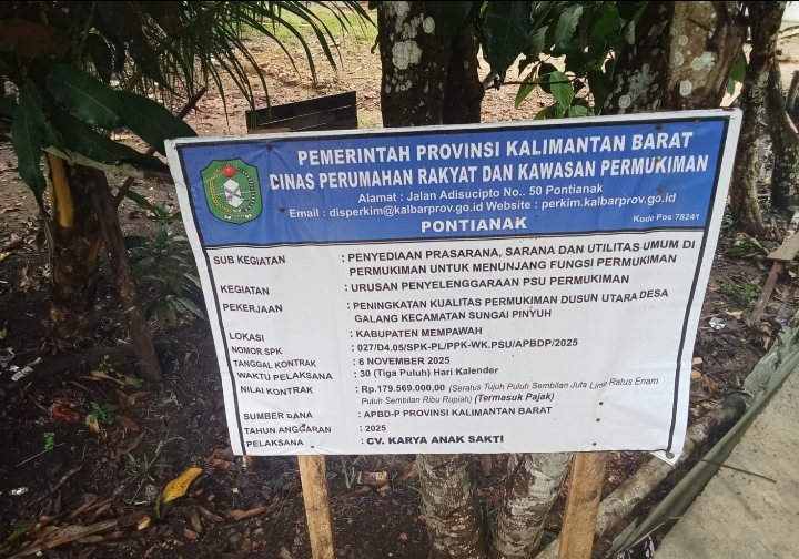 Sebuah proyek jalan senilai Rp 179,57 juta di Kecamatan Sungai Pinyuh, Desa Galang, Kabupaten Mempawah, Kalbar, menjadi sorotan publik. Menurut pemantauan Aliansi Wartawan Indonesia (AWI), kerusakan pada jalan itu muncul hanya 10 hari setelah selesai dikerjakan.