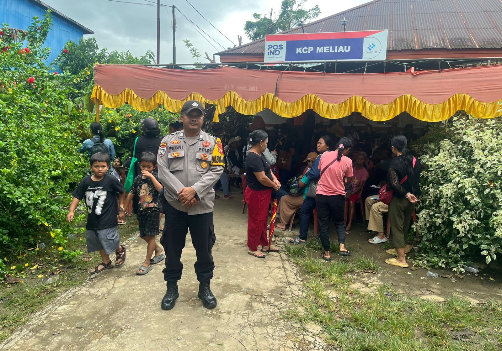 Pengamanan di lapangan dipimpin oleh Kanit Intel Polsek Meliau Bripka Tomi Rusli bersama Ka Jaga Piket Regu I Bripka F. Febri Tri Suhardi, S.Pd., serta anggota piket Bripda Muji Muzakirin. Kehadiran personel Polsek Meliau bertujuan menjaga kelancaran dan kenyamanan seluruh rangkaian kegiatan, terutama karena antusiasme masyarakat penerima bantuan cukup tinggi.