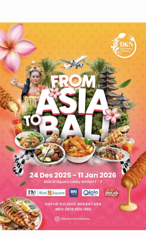 Festival kuliner bertajuk “From Asia To Bali” ini akan digelar mulai 24 Desember 2025 hingga 11 Januari 2026 di Lobi Teras Berlian, Blok M Square.