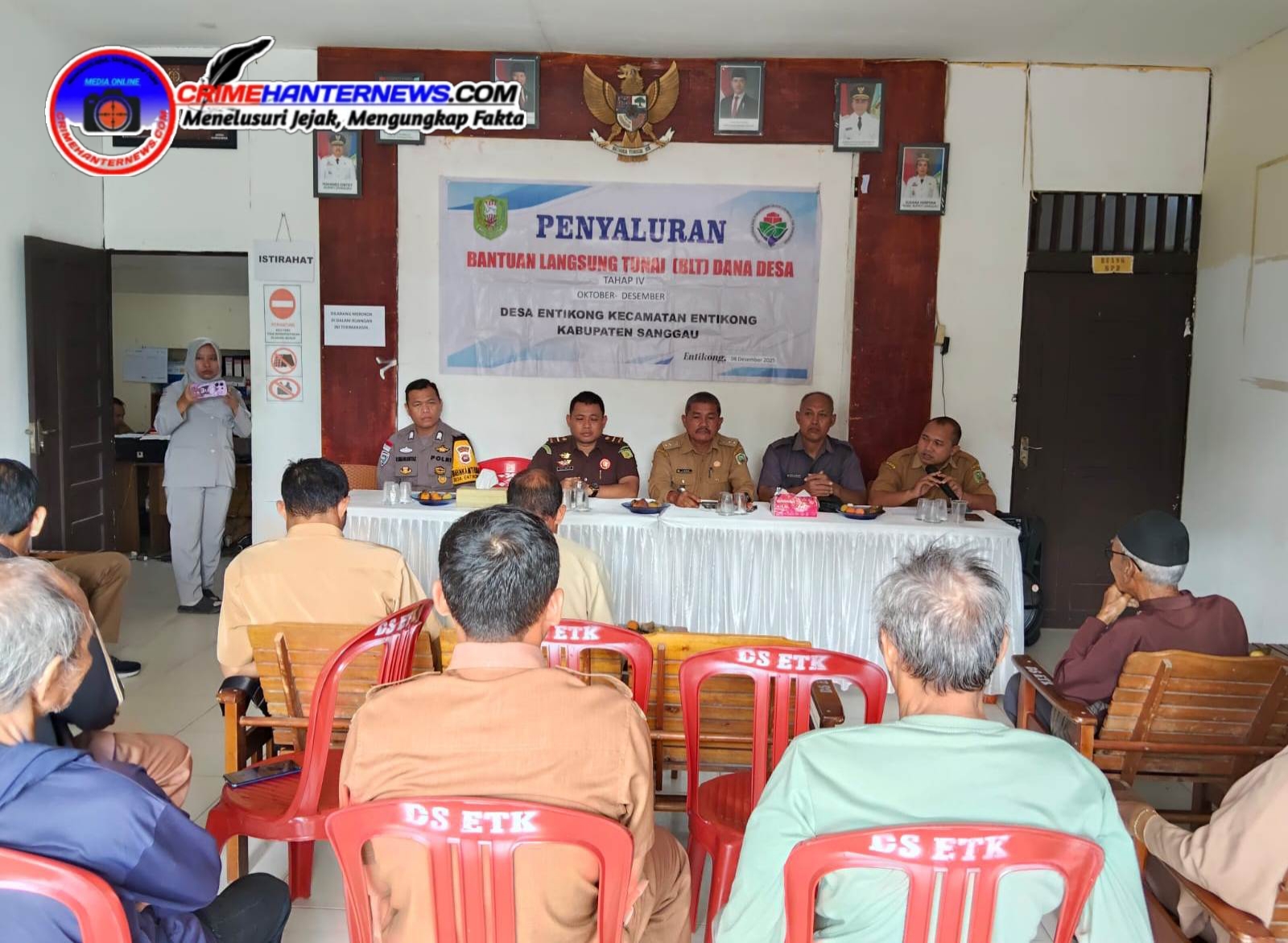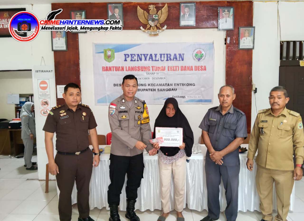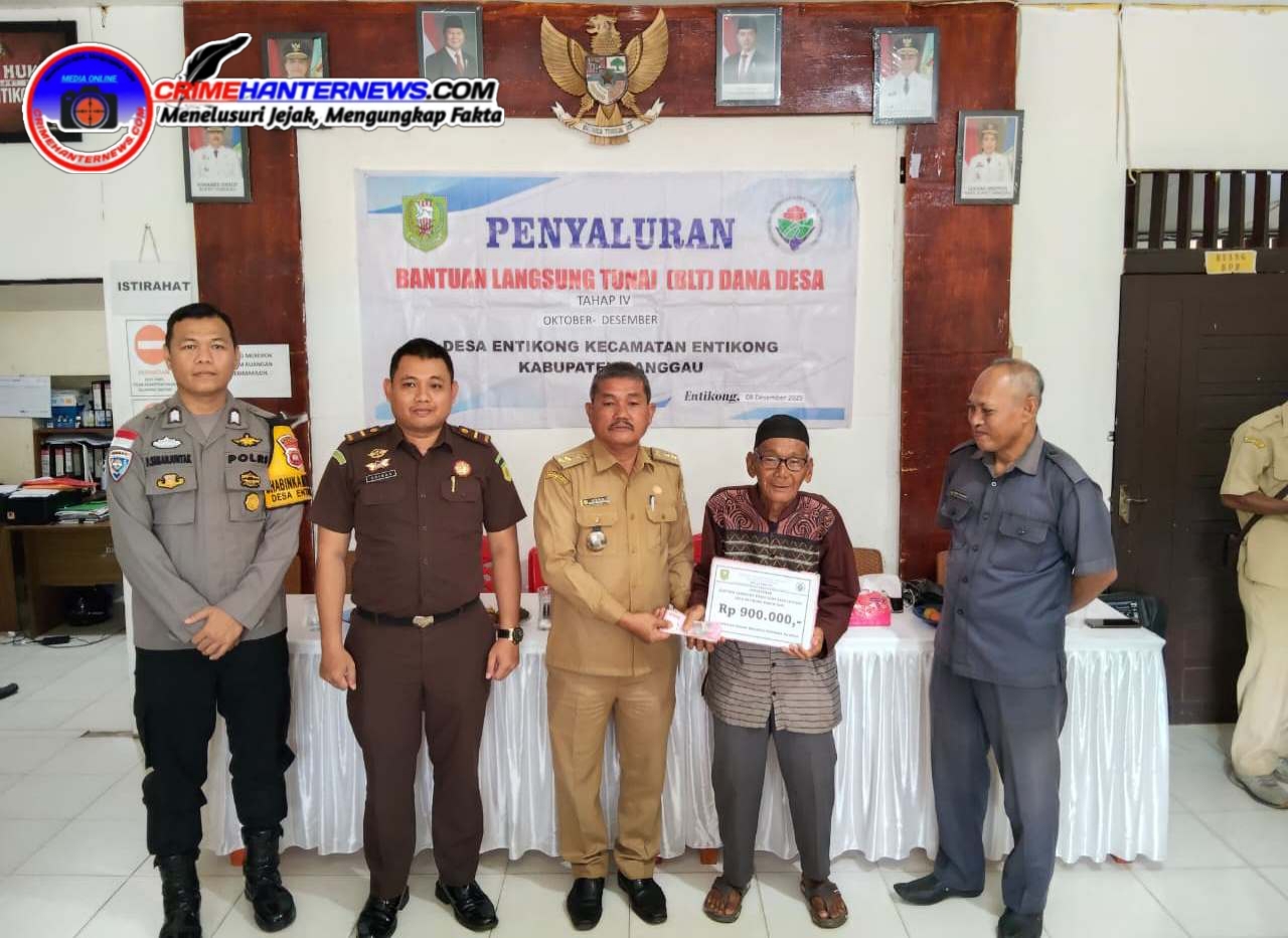 Crimehanternews.com – Sanggau, Polda Kalbar – Pemerintah Desa Entikong menyalurkan Bantuan Langsung Tunai (BLT) Dana Desa tahap IV untuk periode Oktober hingga Desember 2025 kepada warga penerima manfaat pada Senin, 8 Desember 2025. Kegiatan berlangsung di Kantor Desa Entikong, Jalan Lintas Malindo No. 09, Dusun Entikong Benuan, Kecamatan Entikong, Kabupaten Sanggau, mulai pukul 09.00 WIB hingga selesai.