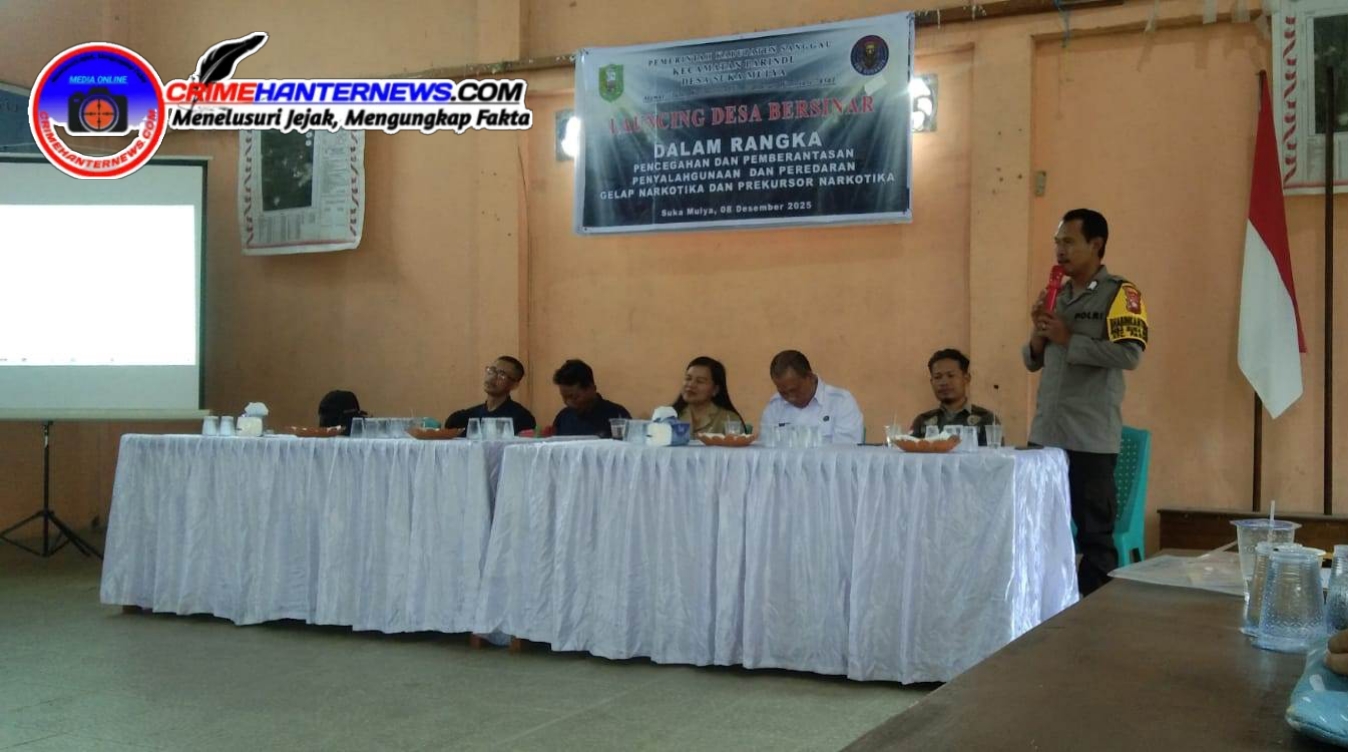 Crimehanternews.com – Sanggau, Polda Kalbar – Kegiatan Launching Desa Bersinar (Bersih dari Narkoba) secara resmi digelar di Gedung Pertemuan Desa Suka Mulya, Kecamatan Parindu, pada Senin 8 Desember 2025. Kegiatan yang dimulai pukul 09.00 WIB ini menjadi tonggak komitmen masyarakat setempat dalam memperkuat ketahanan lingkungan desa terhadap ancaman penyalahgunaan dan peredaran gelap narkoba.