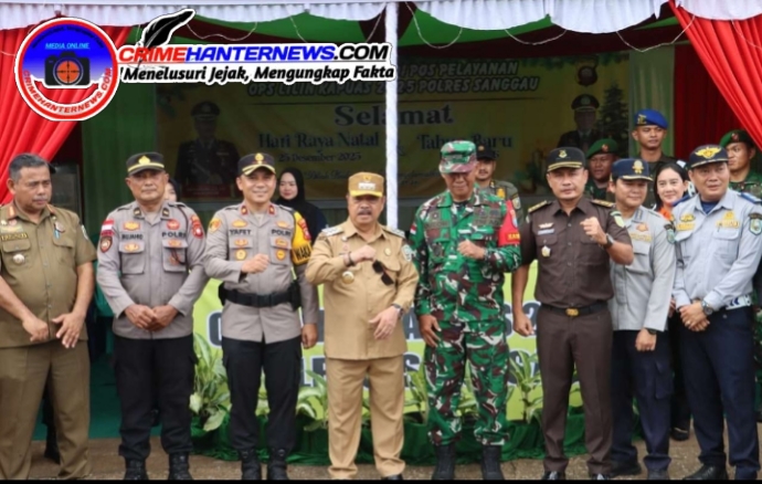 Crimehanternews.com – Sanggau, Polda Kalbar – Bupati Sanggau melakukan kunjungan kerja ke Pos Pelayanan Natal 2025 dan Tahun Baru 2026 milik Polres Sanggau yang berlokasi di kawasan Pujasera, Jalan A. Yani, Kelurahan Ilir Kota, Kecamatan Kapuas, Kabupaten Sanggau, Selasa (23/12/2025) pagi.