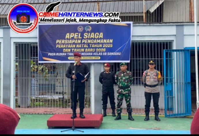 Crimehanternews.com – Sanggau, Polda Kalbar – Rumah Tahanan Negara (Rutan) Kelas IIB Sanggau menggelar Apel Siaga dalam rangka peningkatan kewaspadaan menghadapi Perayaan Hari Raya Natal 2025 dan Tahun Baru 2026, Rabu (24/12/2025) pagi. Kegiatan ini berlangsung sekitar pukul 08.00 WIB di halaman Rutan Kelas IIB Sanggau sebagai langkah antisipatif menjaga stabilitas keamanan dan ketertiban.