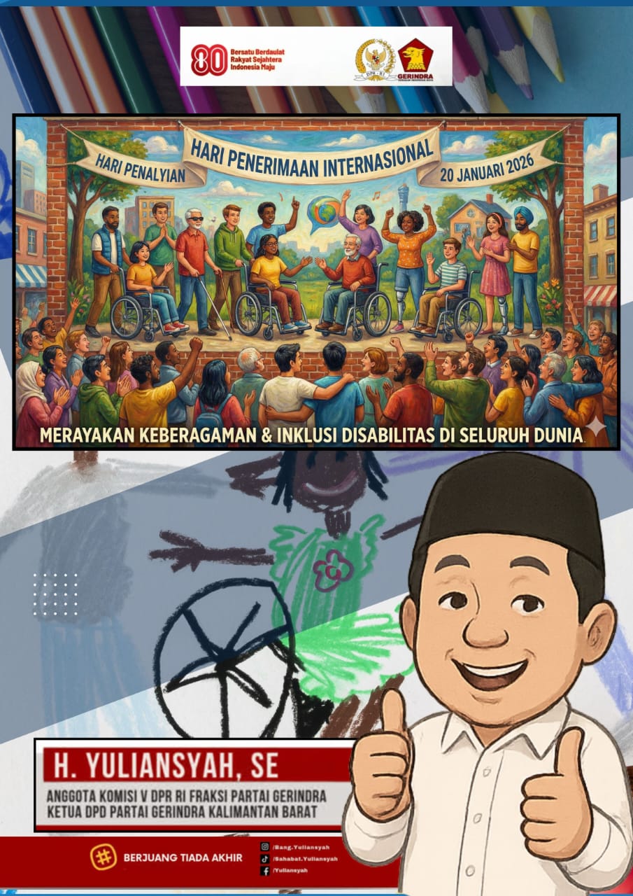 “Pada Hari Penerimaan Internasional 2026 ini, saya ingin menegaskan bahwa penyandang disabilitas adalah aset bangsa. Mereka memiliki hak konstitusional yang sama. Menerima mereka berarti memberikan ruang, kesempatan, dan kepercayaan, bukan sekadar belas kasihan,” tegas H. Yuliansyah, S.E., dalam keterangannya, Selasa (20/1/2026).