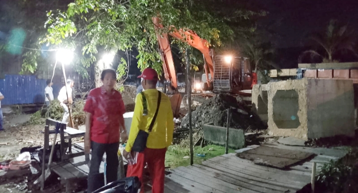 Ia menjelaskan bahwa pembangunan gorong-gorong dilaksanakan secara bertahap. Tahap pertama telah diselesaikan sekitar dua bulan lalu di kawasan Marga Yo dan Huang. Sementara itu, tahap kedua kembali dilanjutkan pada malam hari ini di lokasi depan Marga Te dan tepat di depan Kantor Bumi Raya.