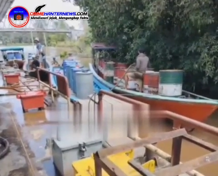 Temuan tersebut terjadi di sebuah dermaga sungai yang berada di kawasan pedalaman. Dari dokumentasi di lokasi, terlihat puluhan drum plastik berwarna biru berjajar di atas perahu motor, sementara sejumlah orang terlihat memindahkan bahan bakar menggunakan selang dari wadah penampungan ke dalam drum.